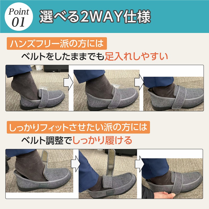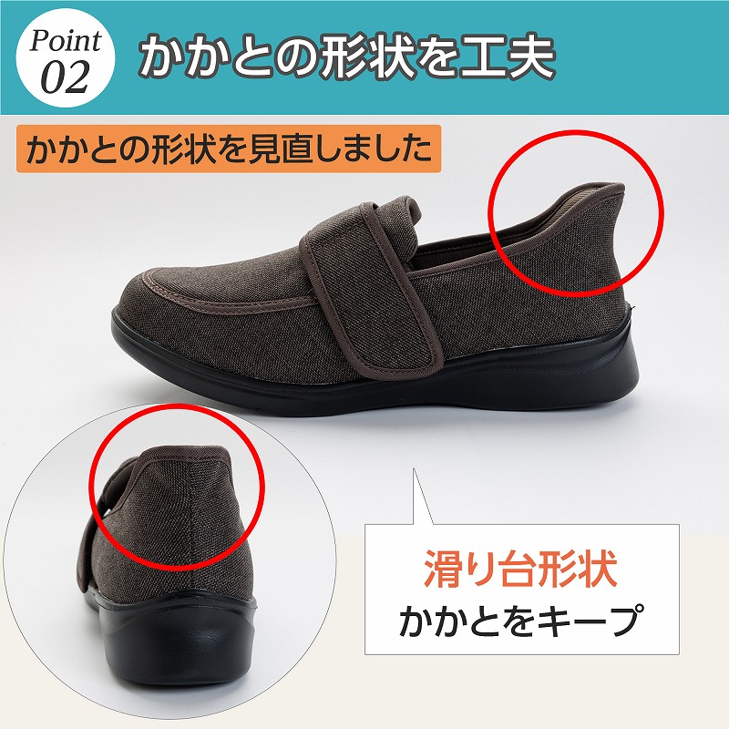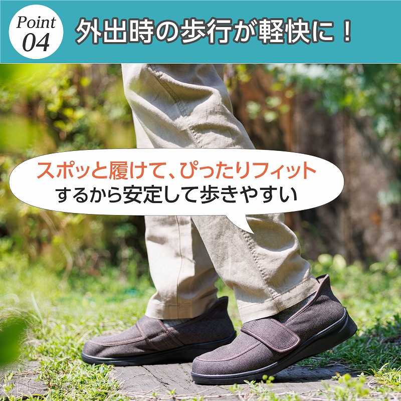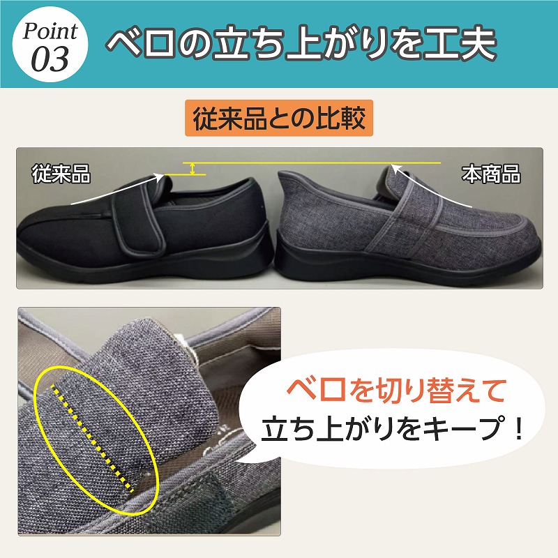 ベルトをしたままでも「スポ」っと履ける大きく開く履き口形状と巻き込みにくいベロ(甲部)。