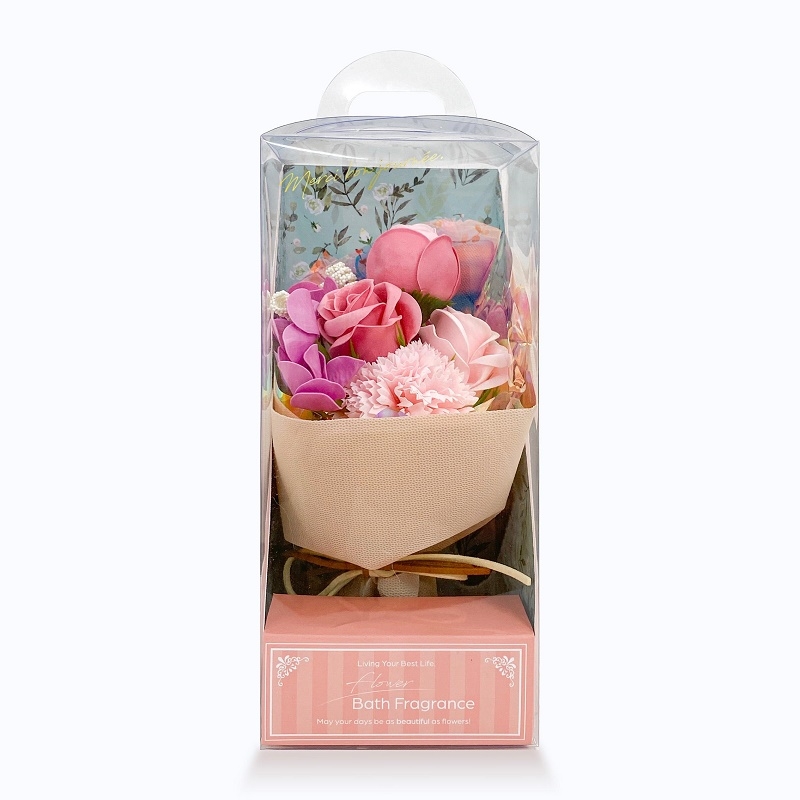 ソープフラワーのブーケ、クリアケース入り