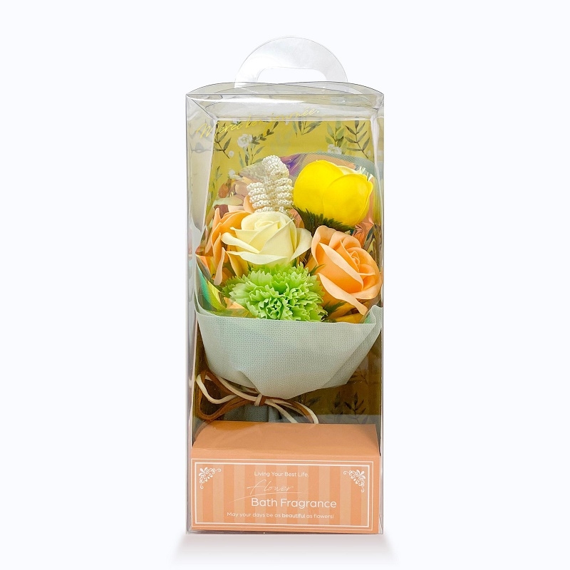 ソープフラワーのブーケ、クリアケース入り
