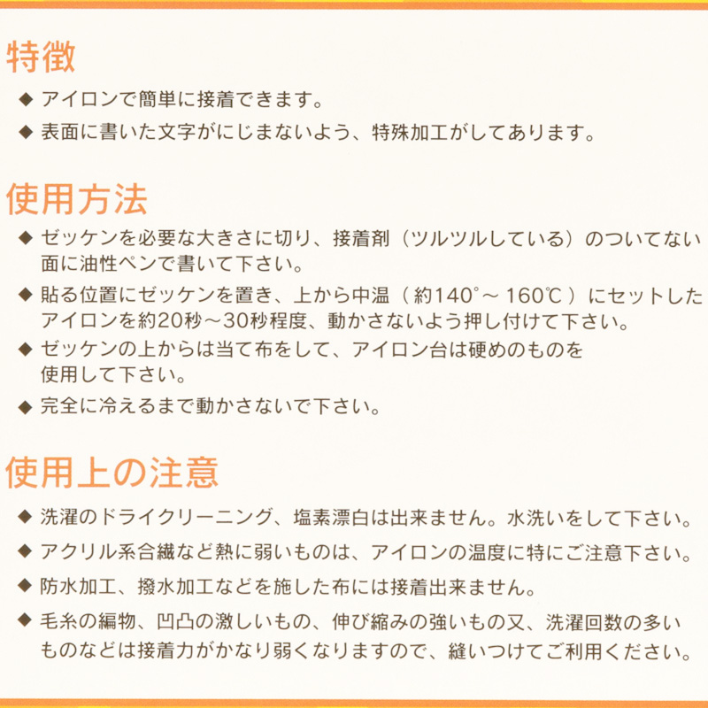 毛糸の編み物や凹凸の激しいもの、伸び縮みの強いもの、洗濯回数の多いものは接着力が弱くなりますので