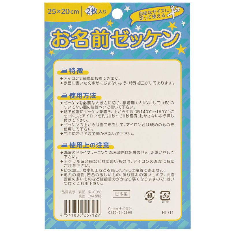 アイロンで接着ができるのでお取り扱いが簡単なお名前ゼッケンです。