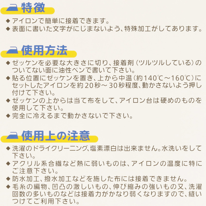 毛糸の編み物や凹凸の激しいもの、伸び縮みの強いもの、洗濯回数の多いものは接着力が弱くなりますので