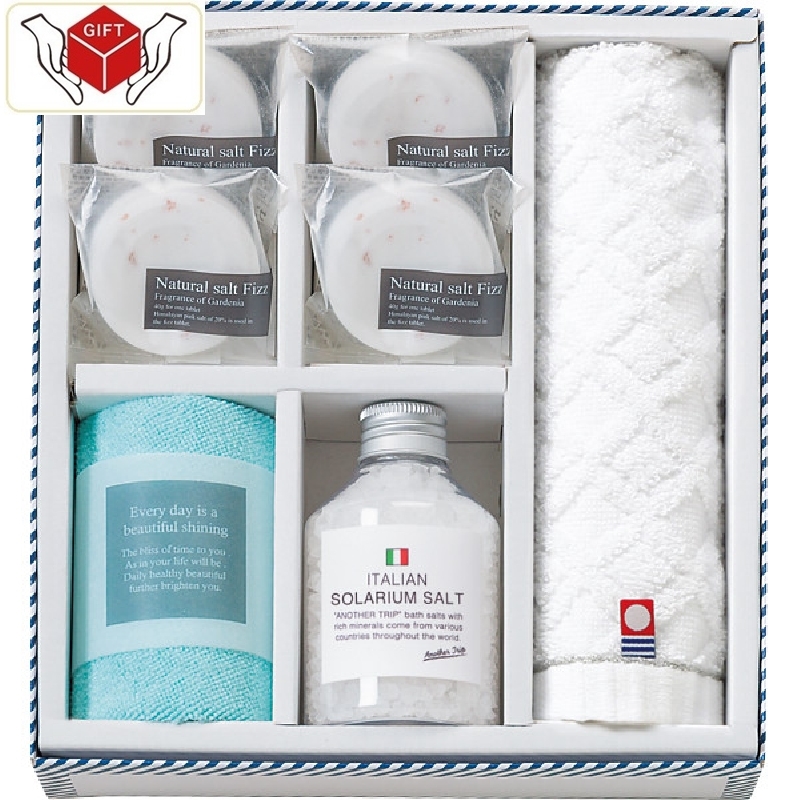 ●ウォッシュタオル・マイクロファイバークロス各1枚、ソルト・フィズ40g4個、ソルト入浴料(イタリアン)180g1個