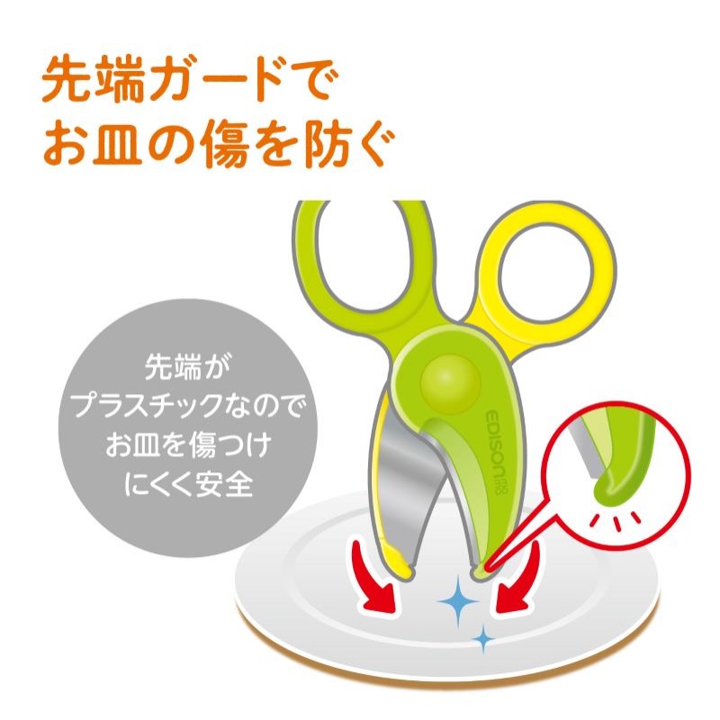 プラスチックの先端ガードで、お皿を傷つけにくく安全!ケース付きでお外でも使えます。
