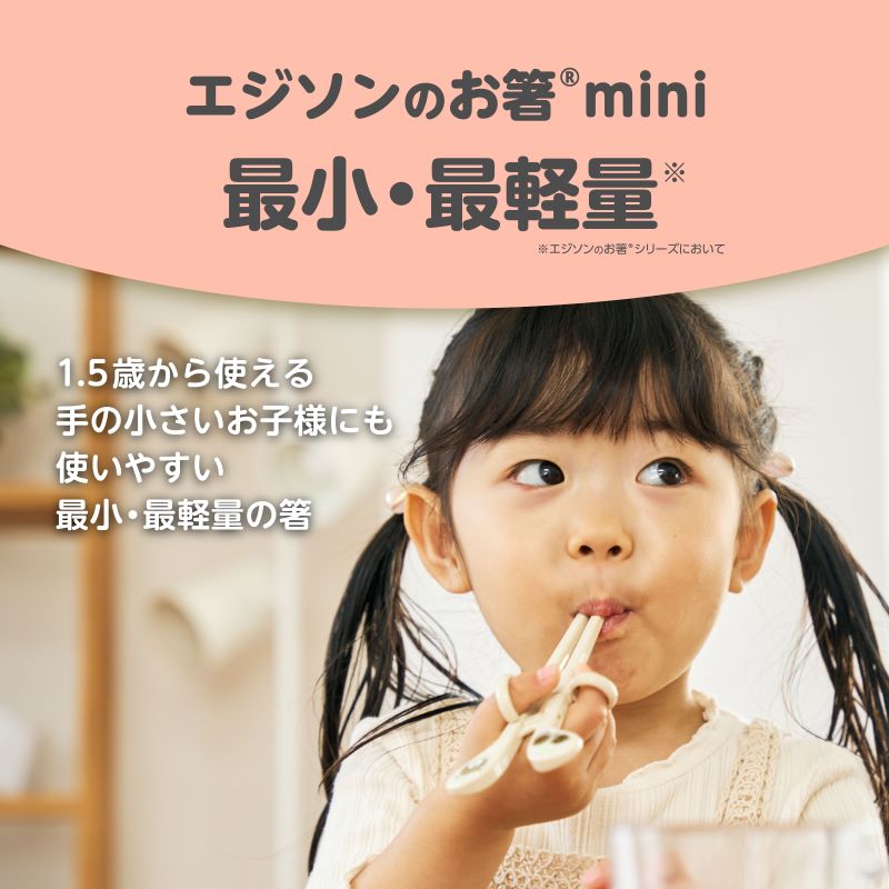 手の小さなお子さまのお箸デビューに!エジソンシリーズの中で一番小さく、軽いお箸。リングに指を入れるだけですぐ使える。箸先は掴みやすいよう、幅広い形状ですべり止め加工されています。
