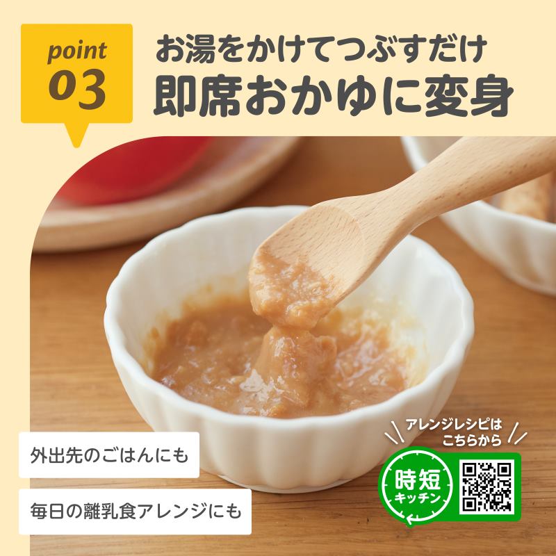 手づかみ練習にもなるおせんべいでお湯に溶かして即席おかゆもできるおやつ。