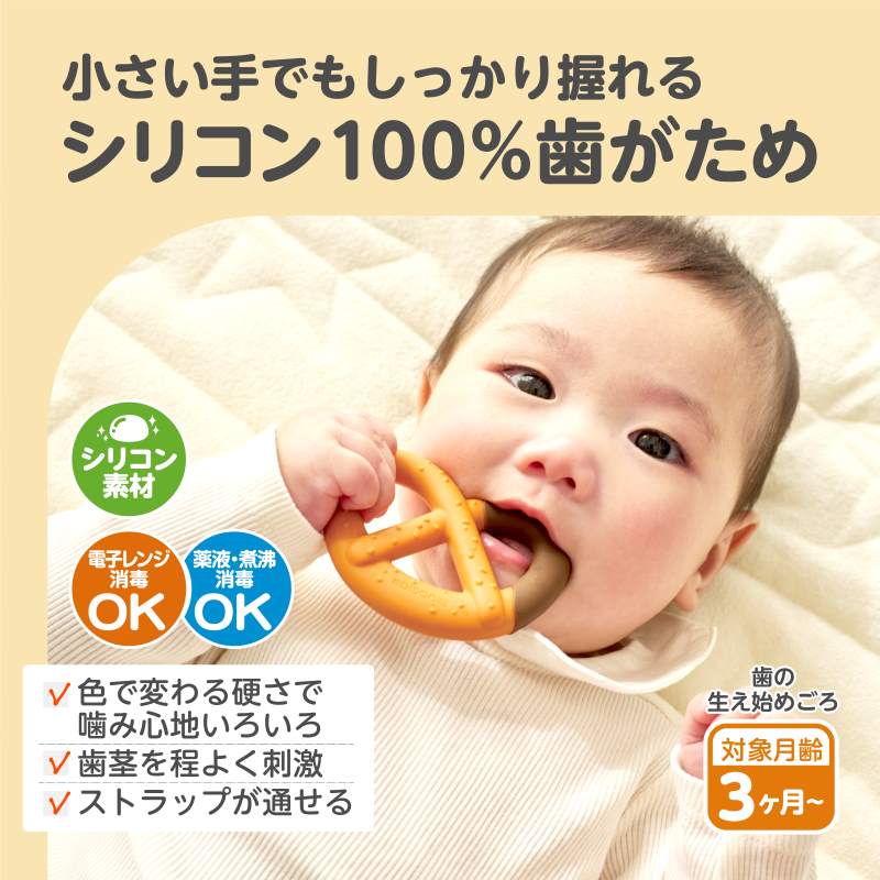 本物のプレッツェルそっくり、小さい手でもしっかり握れるシリコン100%歯固め