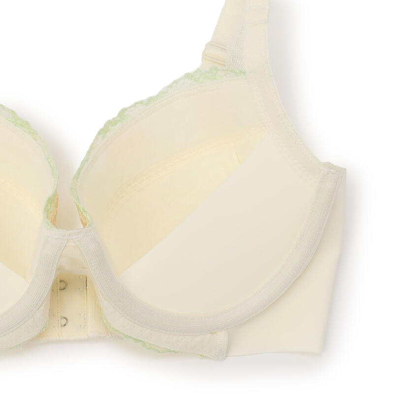 ブーケ柄を表現したエンブレースを使用。脇・背中をすっきり整えるブラジャー。