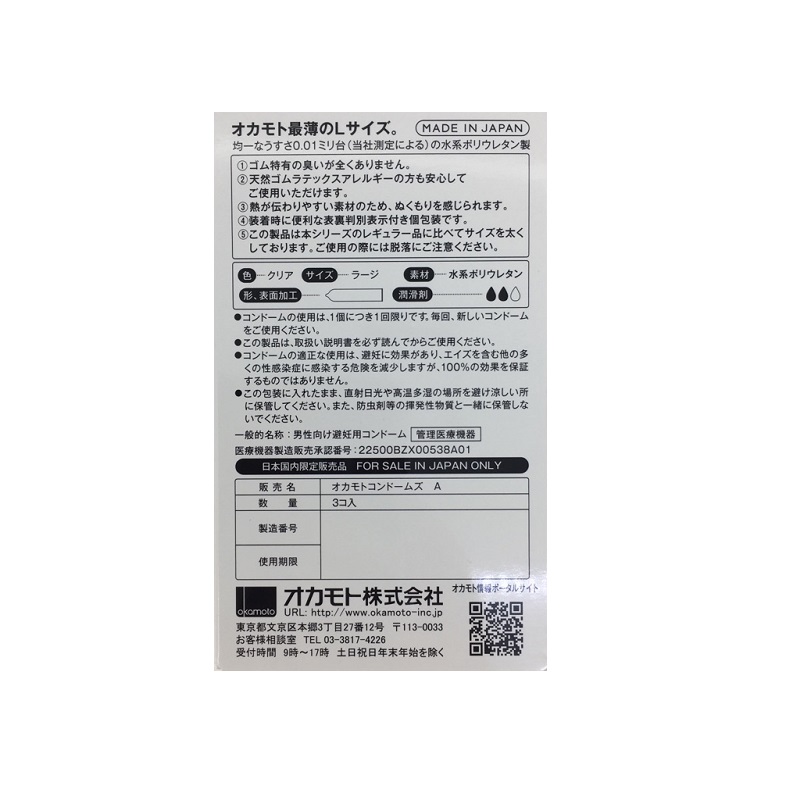 どこを測定しても均一な薄さ0.01ミリのLサイズコンドーム。