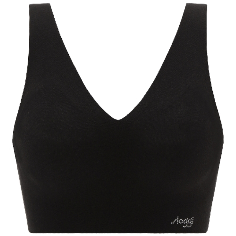 オーガニックコットン55%の生地を使用した、ナチュラルな風合いの無縫製ハーフトップブラです。
