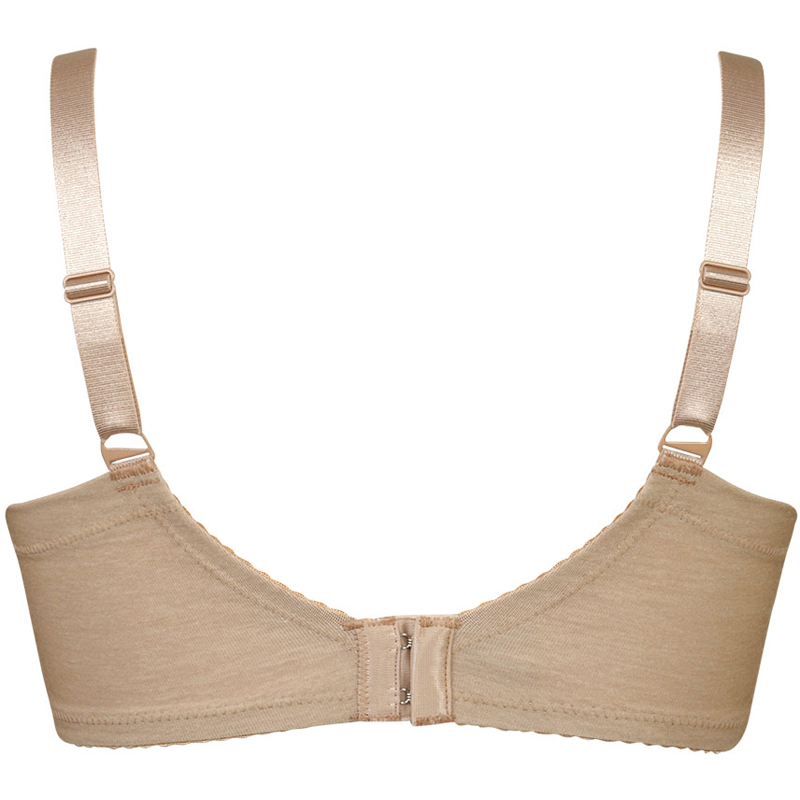 カップ肌側やバックはソフトな綿混素材、ストラップにも伸びのよいやわらかな素材を使い、