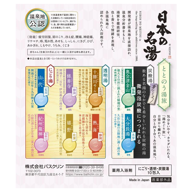 ●炭酸湯・にごり湯・透明湯をアソート(10 包 8 種入)