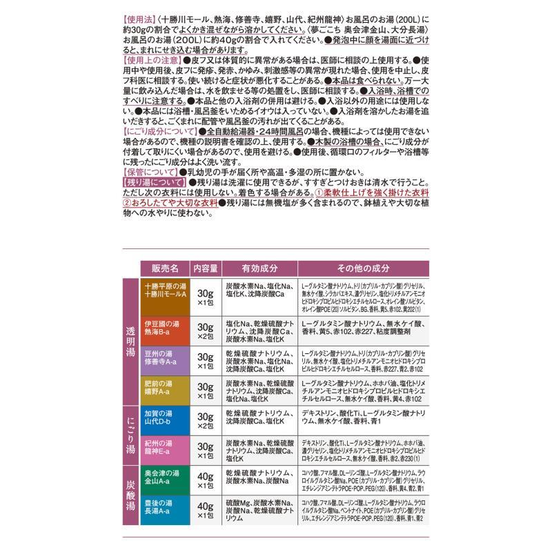 ●炭酸湯タイプ「夢ごこち」…奥会津金山×1包、大分長湯×1包