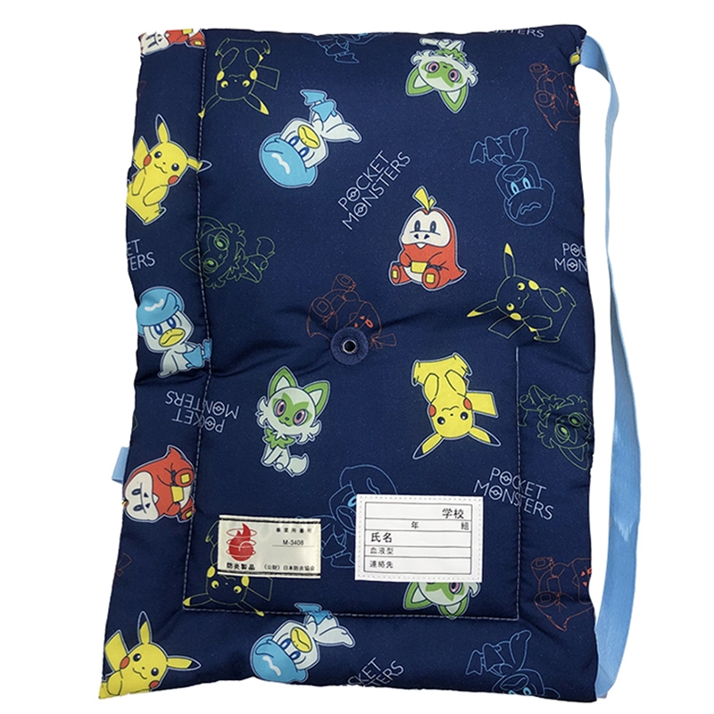 人気キャラクター柄の防災ずきんです。耳穴付きで外部の音も聞き取りやすいです。日本防炎協会認定品