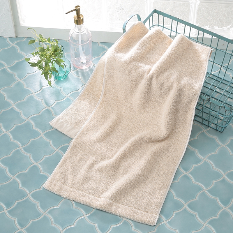肌にふれたときの感触が非常に柔らかく、快適なタオルです。ハンガーにかけやすいサイズです。