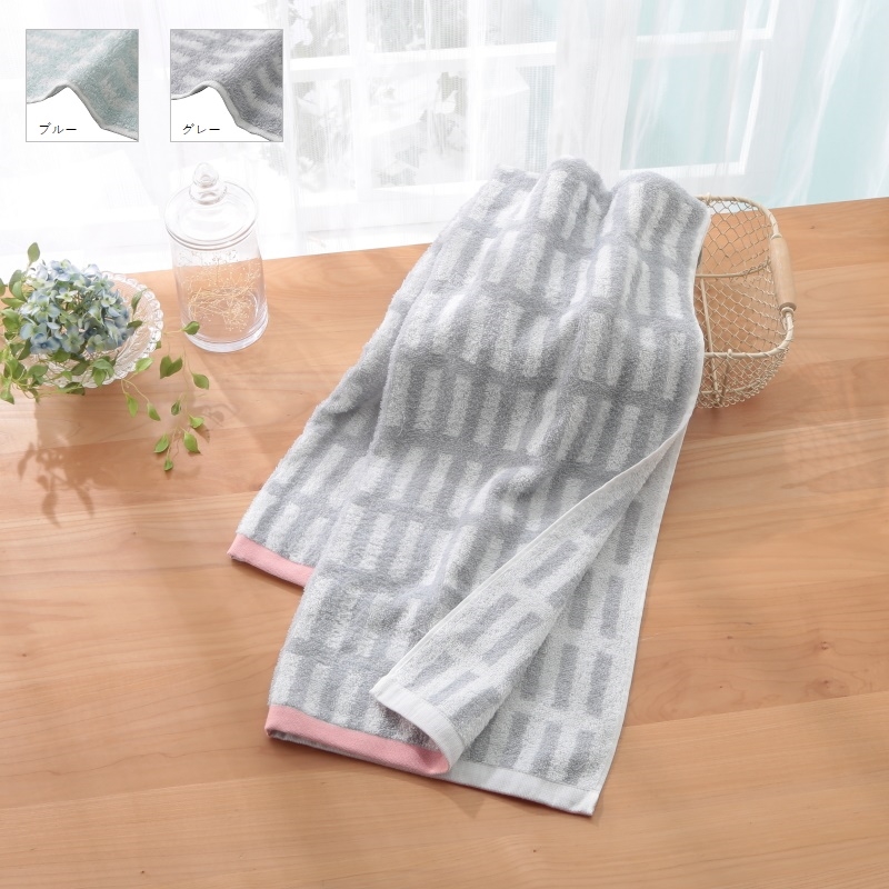 通常の綿100%タオルよりも乾きやすく、繰り返しの洗濯や使用に強いタオルです。