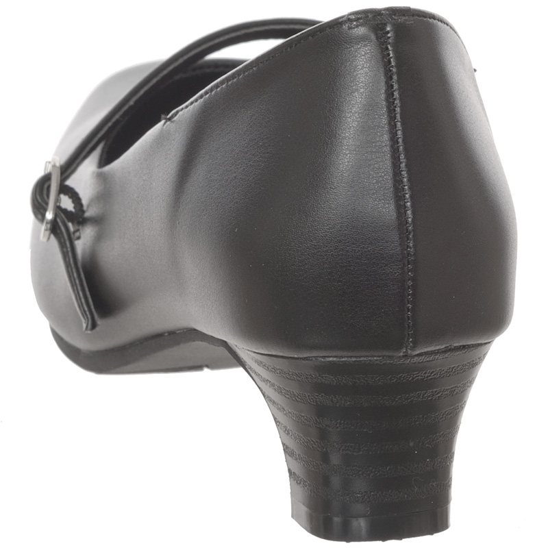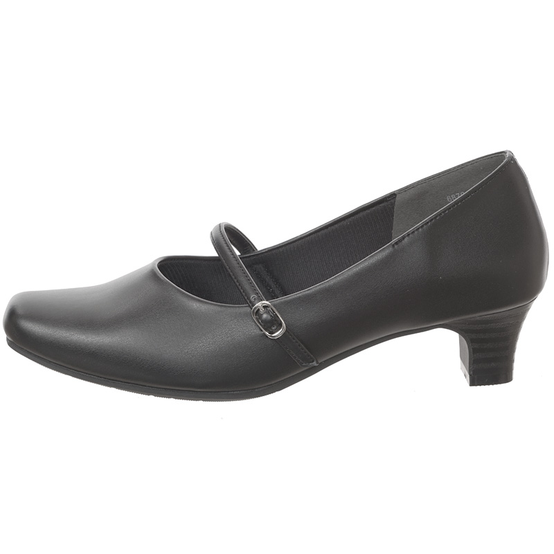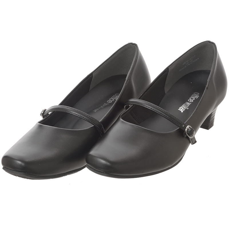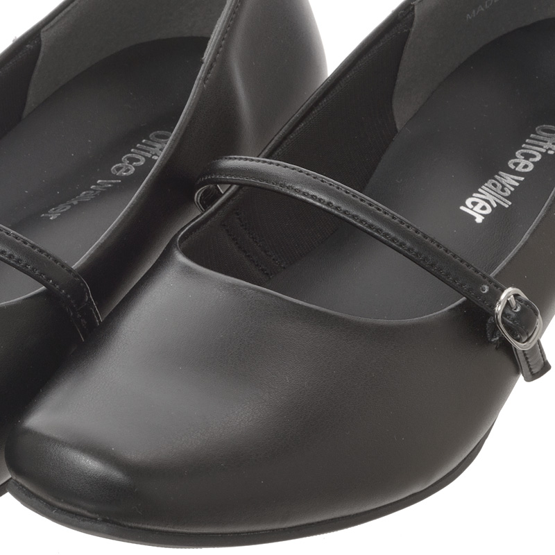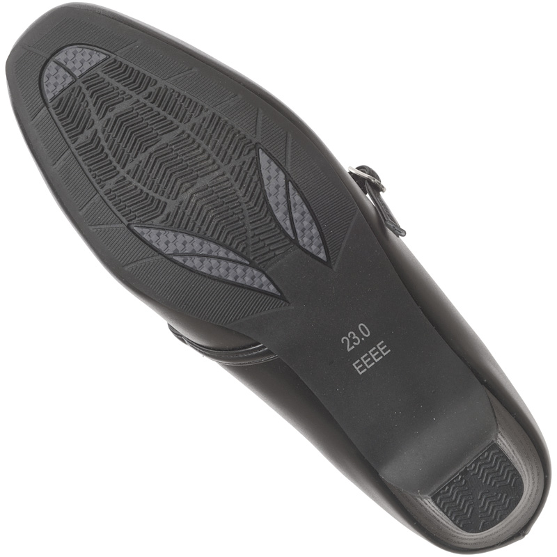 幅広ゆったり設計のブラックパンプス。