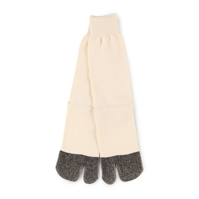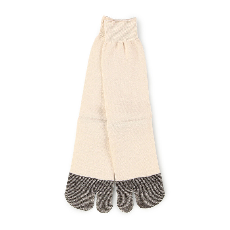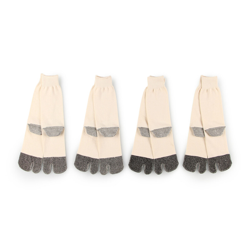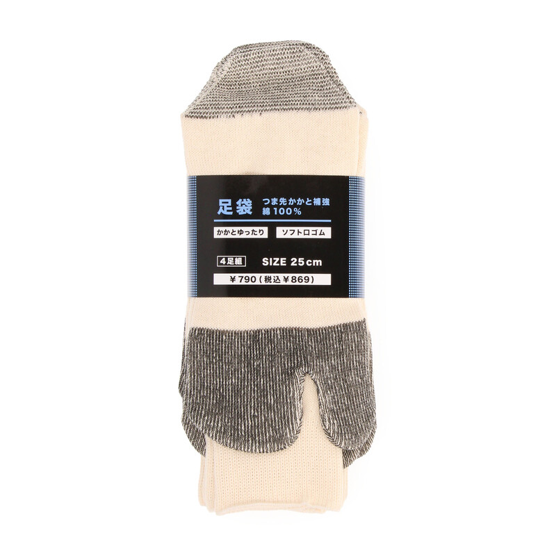 肌に優しい綿100%素材ながら、つま先かかと補強でハードワークでもやぶれにくいのがポイント。