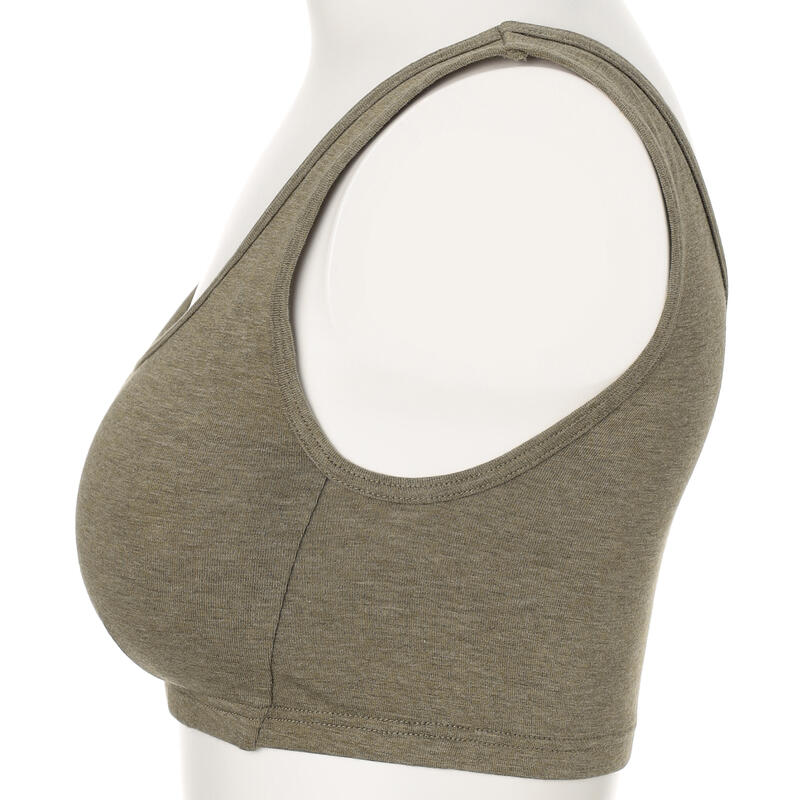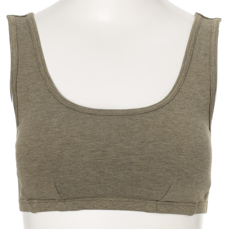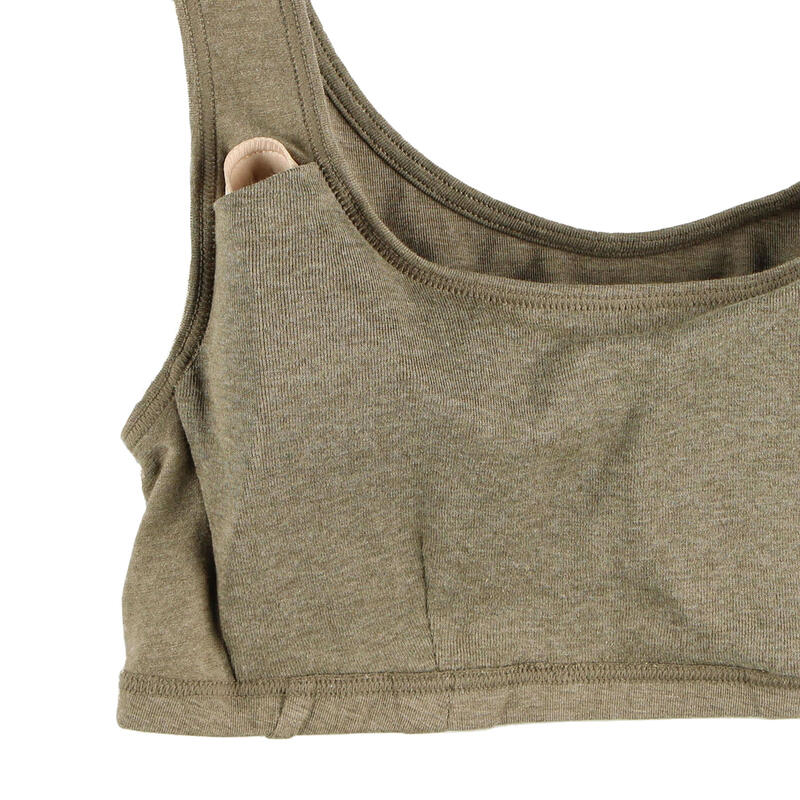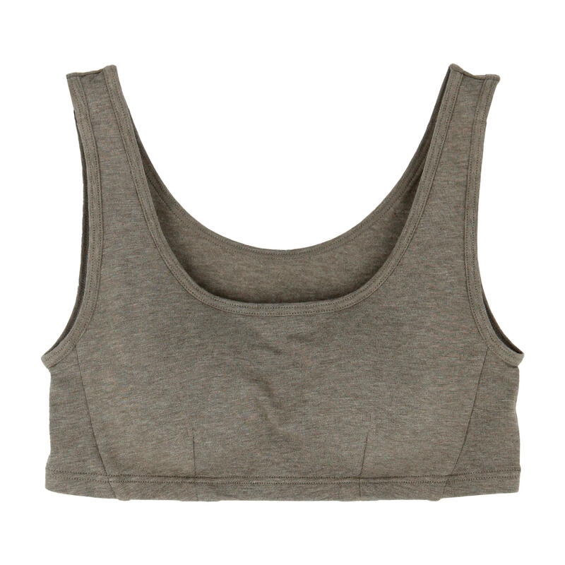パッドの着脱が可能な無地デザインのハーフトップ。