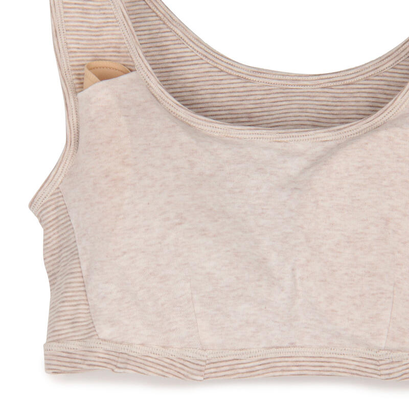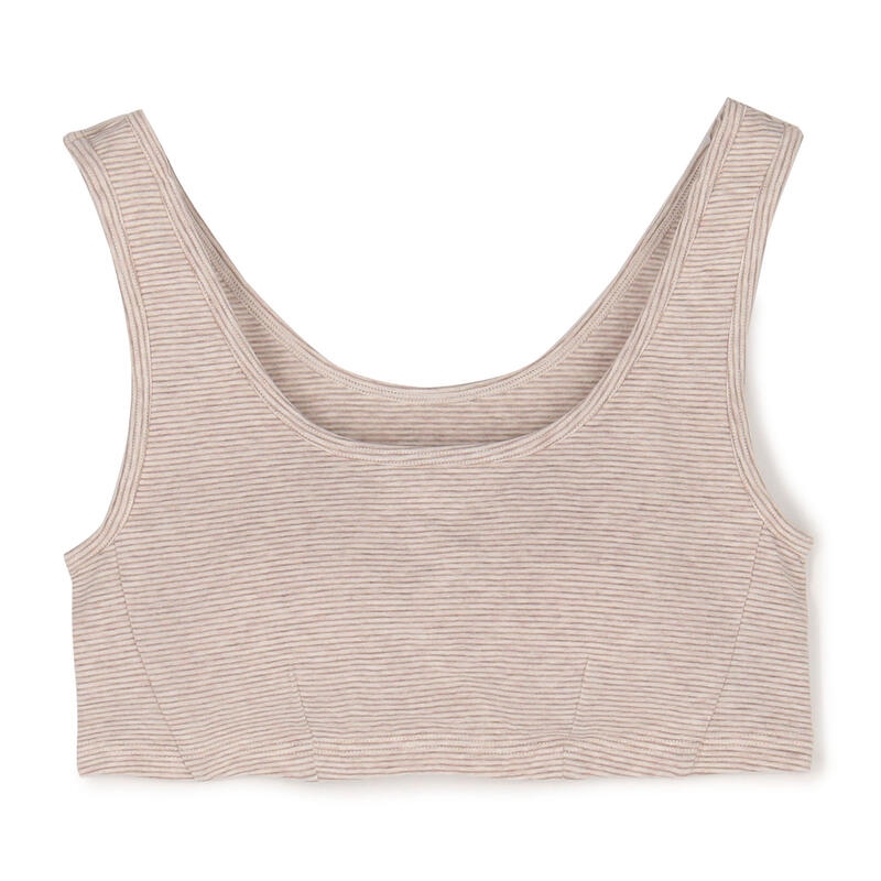 パッドの着脱が可能な無地デザインのハーフトップ。