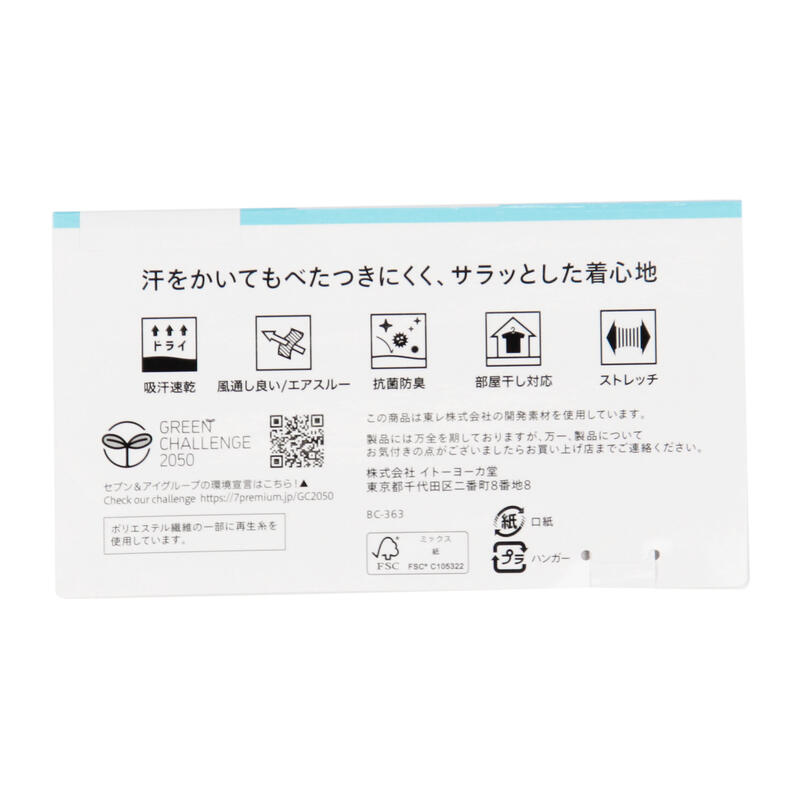 通気性に優れ、吸汗速乾・抗菌防臭加工によって一日中さらりとした肌ざわりが続きます。