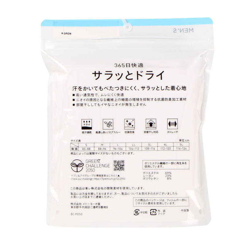 - 【M・Lのみ】ボディクーラー サラッとドライ脇汗取り付き半袖Vシャツ/セブンプレミアムライフスタイル