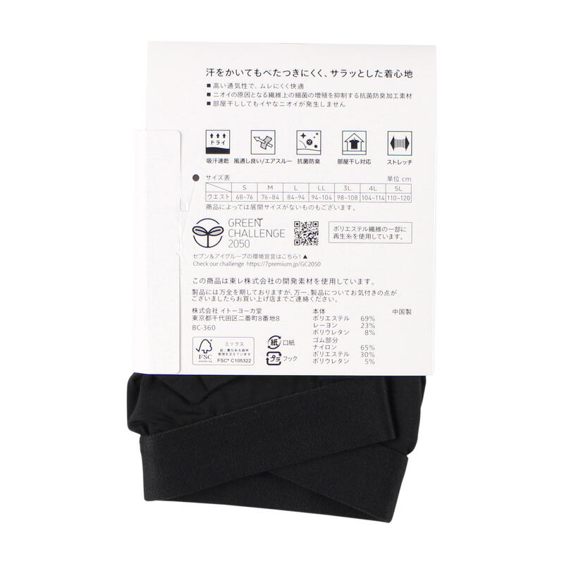 - 本体:ポリエステル69%、レーヨン23%、ポリウレタン8%