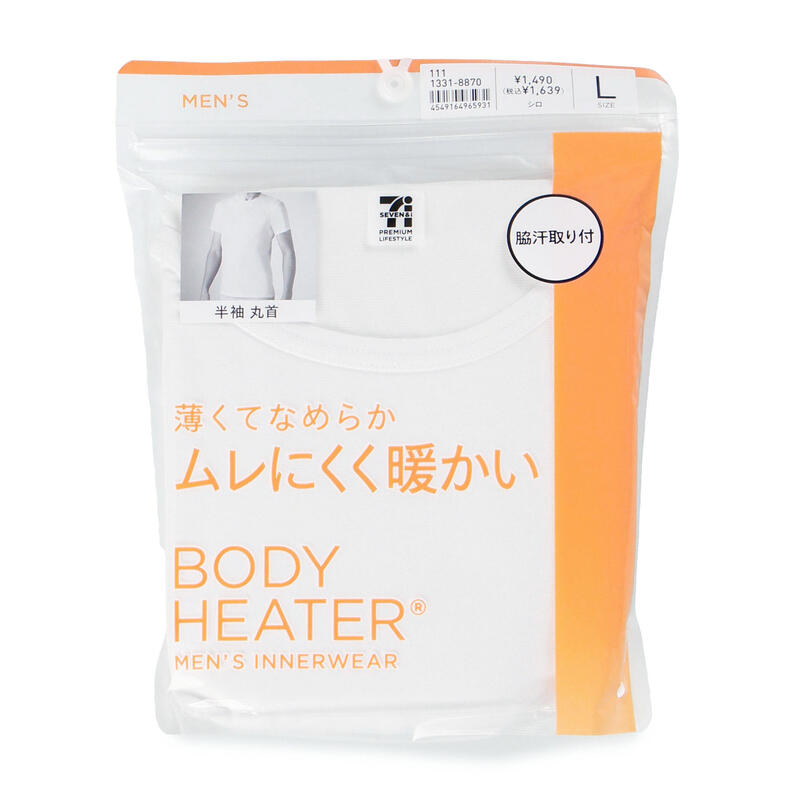 - ボディヒーター ムレにくく暖かい 紳士 脇汗取り付半袖丸首シャツ/セブンプレミアムライフスタイル