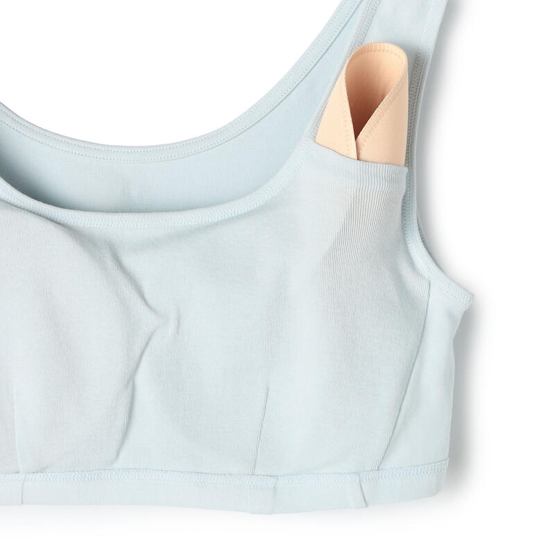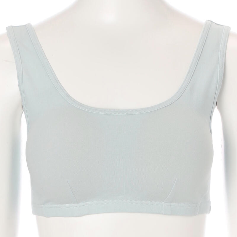パッドの着脱が可能な無地デザインのハーフトップ。