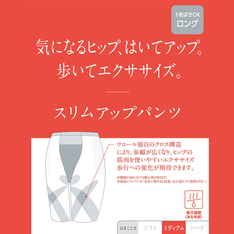 「スリムアップパンツ」 気になるヒップ、はいてアップ。歩いてエクササイズ。