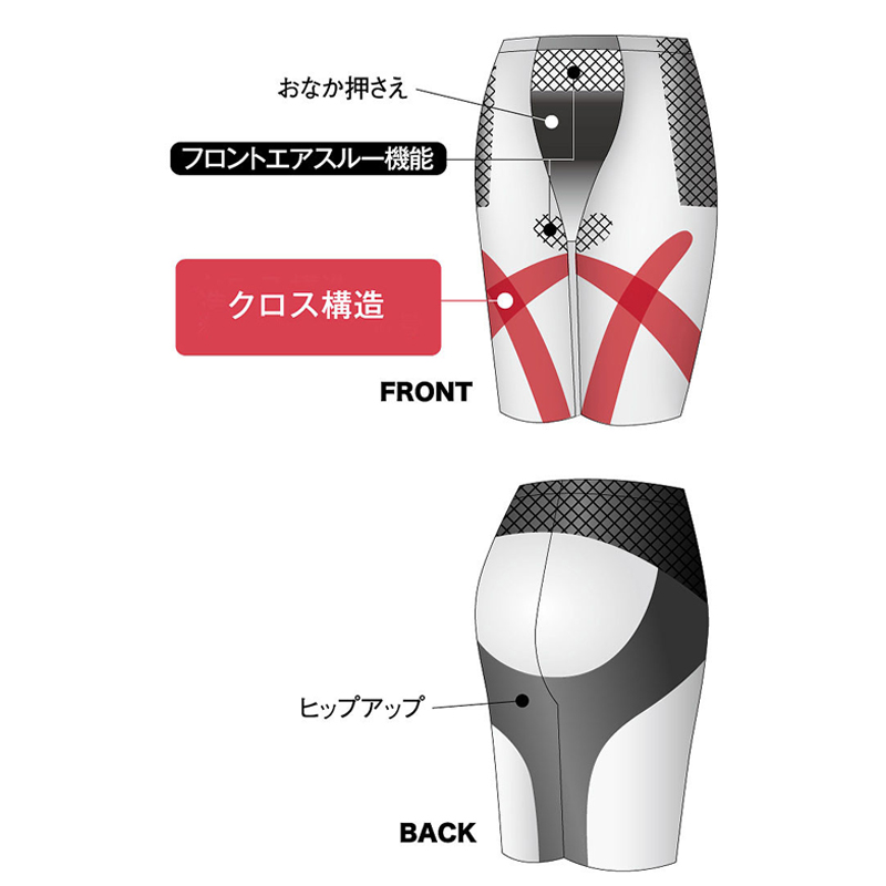 ●ヒップもおなかもすっきり フロントのパワー切り替えで、おなかを押さえ、