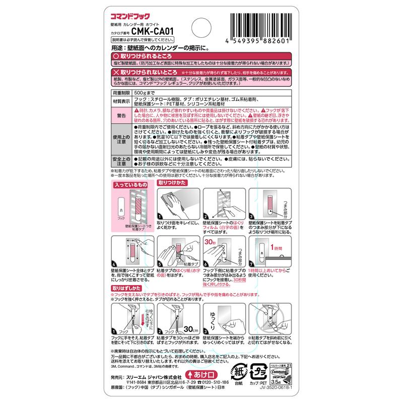 スリーエム 3M コマンドフック 壁紙用 ホワイト