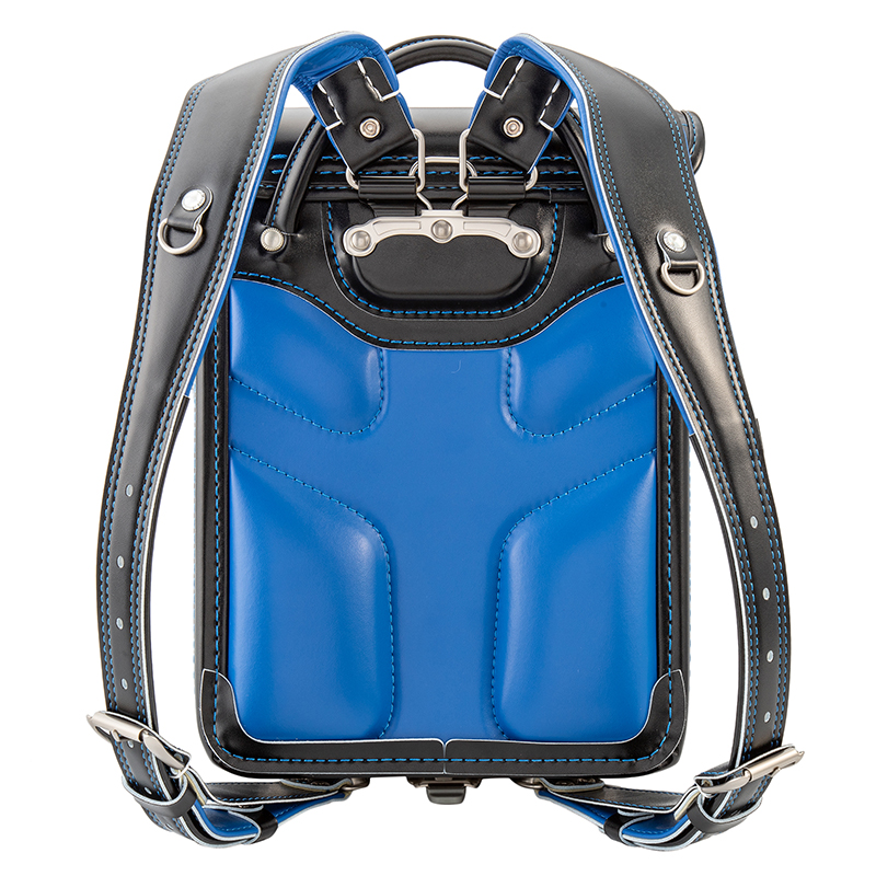 ランドセルが最も折れやすいとされるマチの部分に形状補正樹脂を搭載し、さらに中央部には鉄芯を内蔵。
