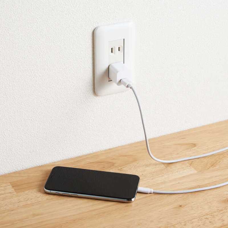 USB‐A端子を搭載したパソコン及び充電器とLightningコネクターを搭載した