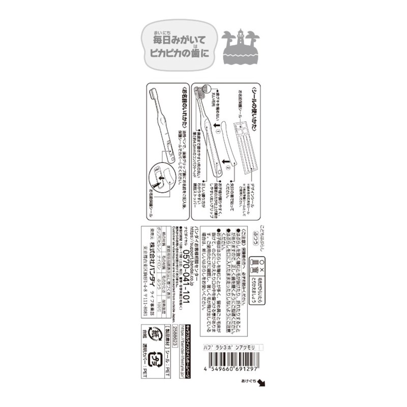 ●ハブラシに貼るデザインシールが4枚付いているので、お好きなデザインを選べます。