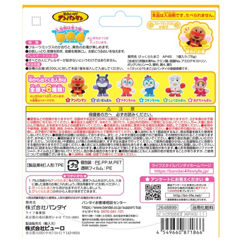 - 炭酸水素Na、クエン酸、硫酸Na、アミロデキストリン、ポリグリセリン-3、香料、黄4、黄5