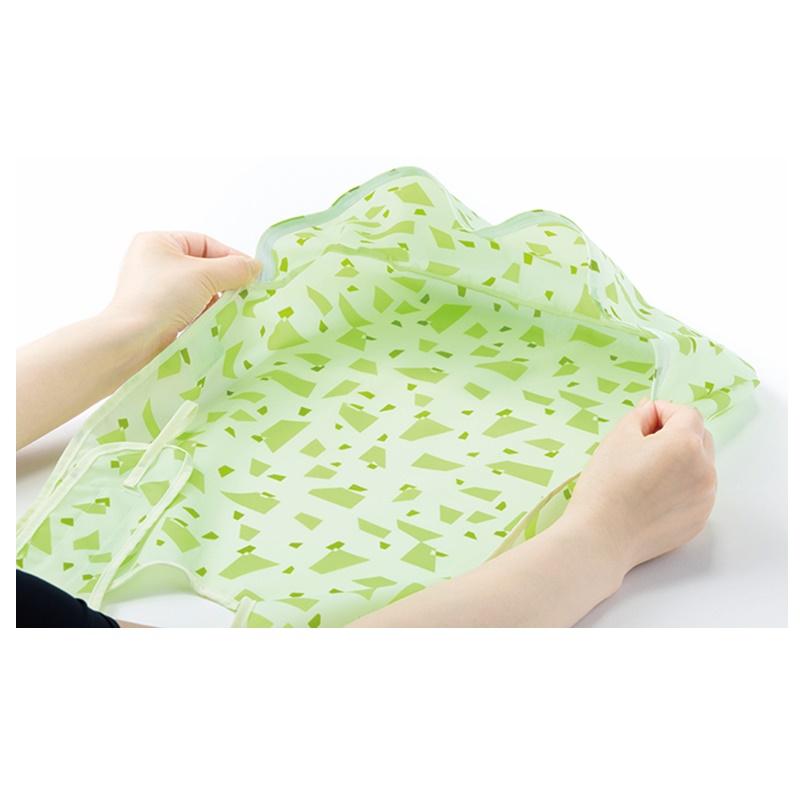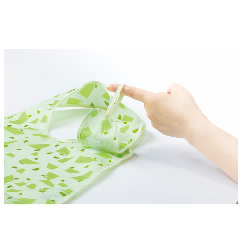 一人でもワンタッチで簡単に着脱がしやすいように、調節部分に調節部分に指を通せるループをつけたエプロン。
