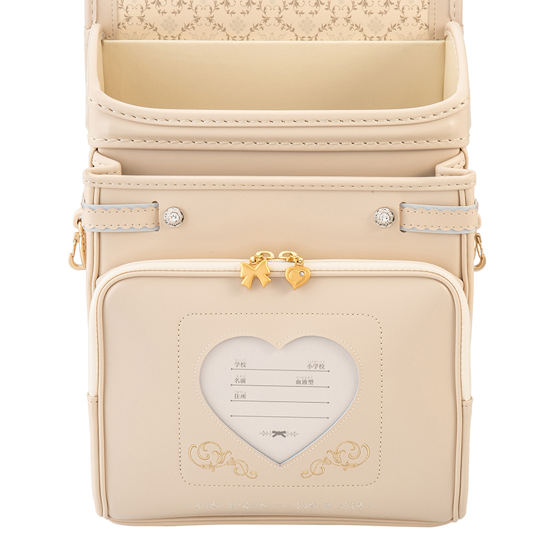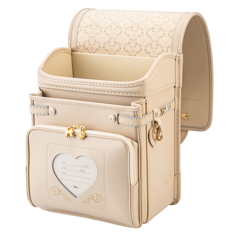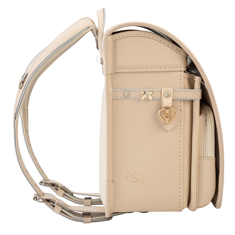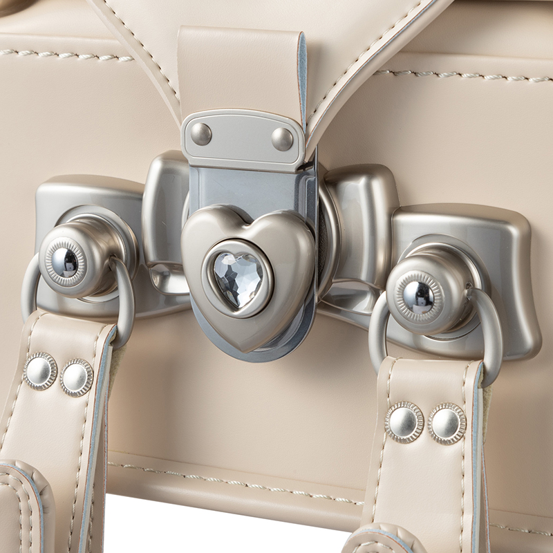 オリジナルリボン鋲をかぶせと両マチに取付けたエレガントデザインランドセルです。