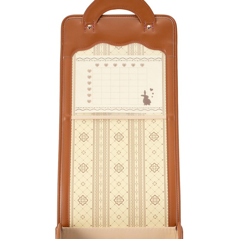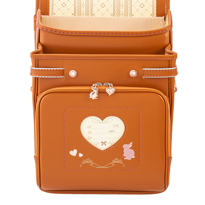 オリジナルハートとウサギの引手と刺繍がかわいいロマンッティックなデザインランドセルです。