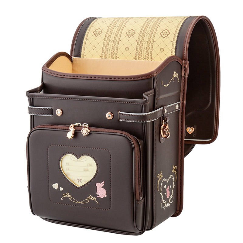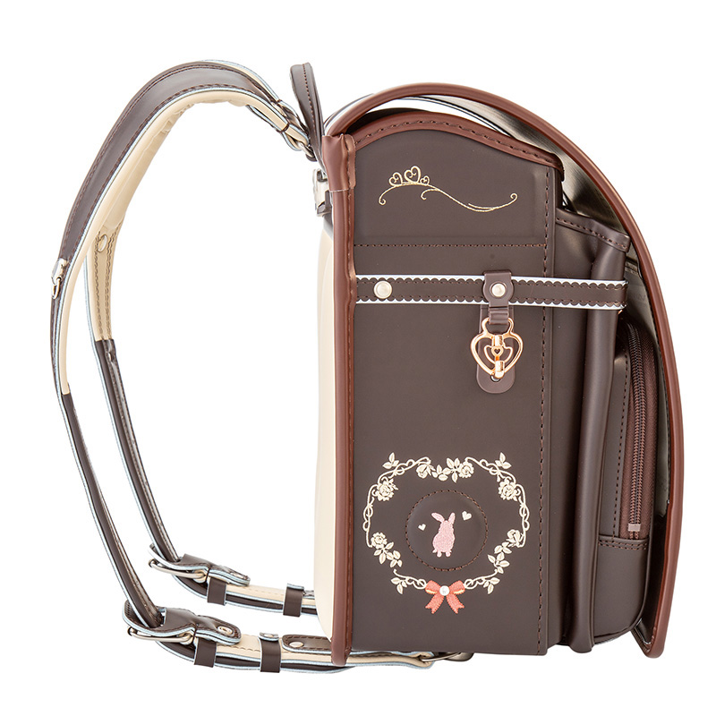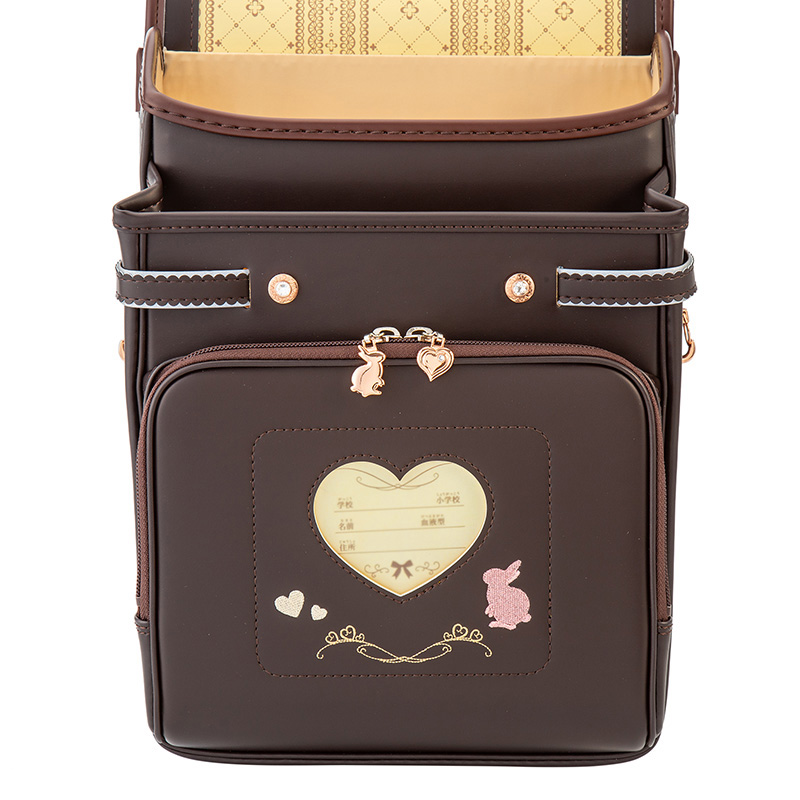 オリジナルハートとウサギの引手と刺繍がかわいいロマンッティックなデザインランドセルです。
