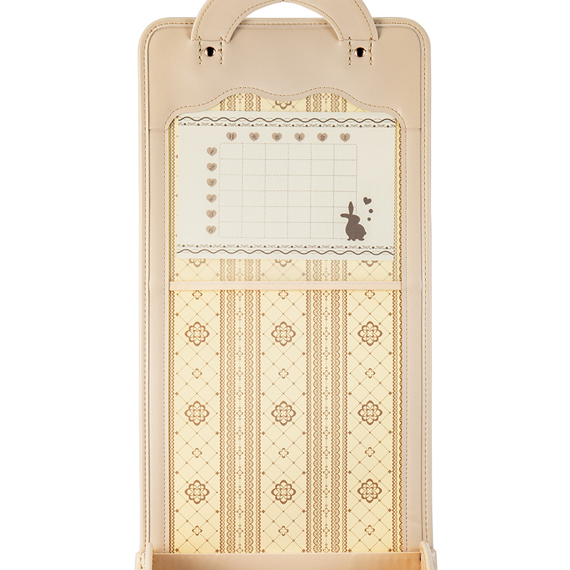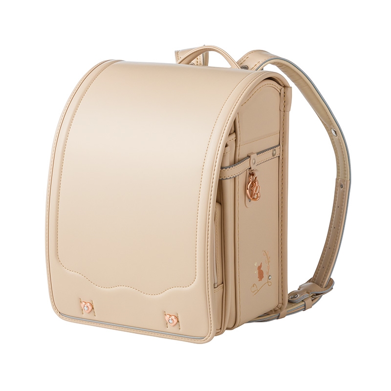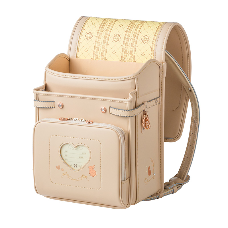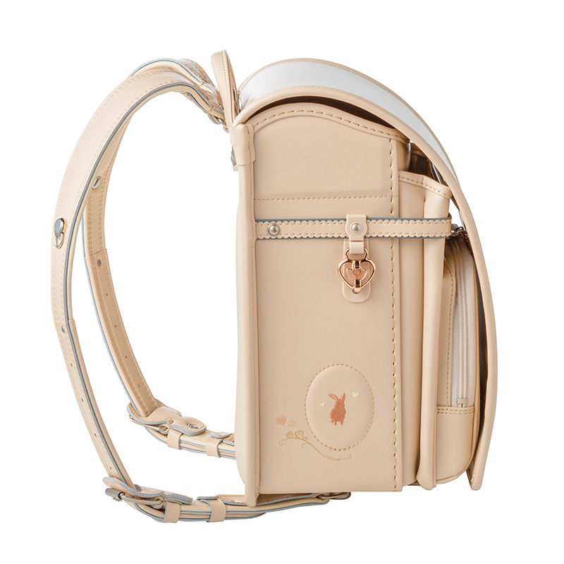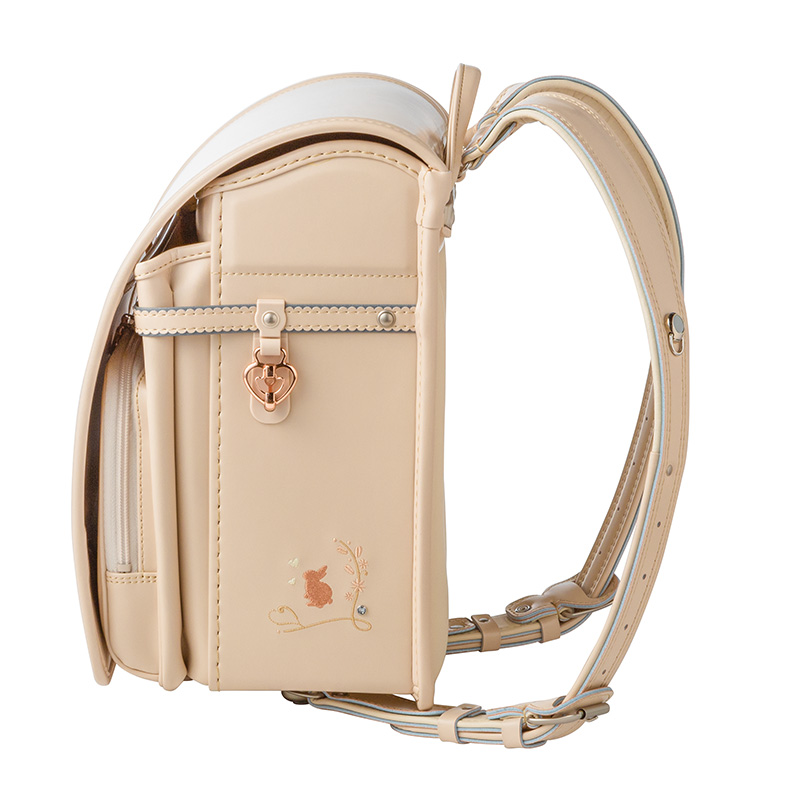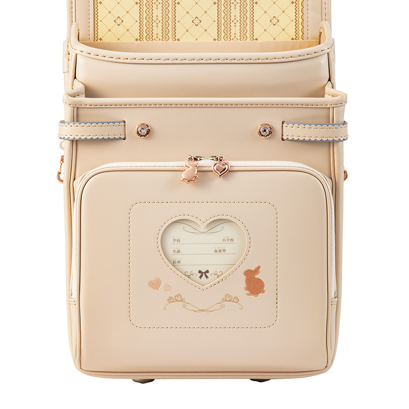 オリジナルのハートとウサギの引手、うさぎの刺繍がかわいいロマンッティックなデザインランドセルです。