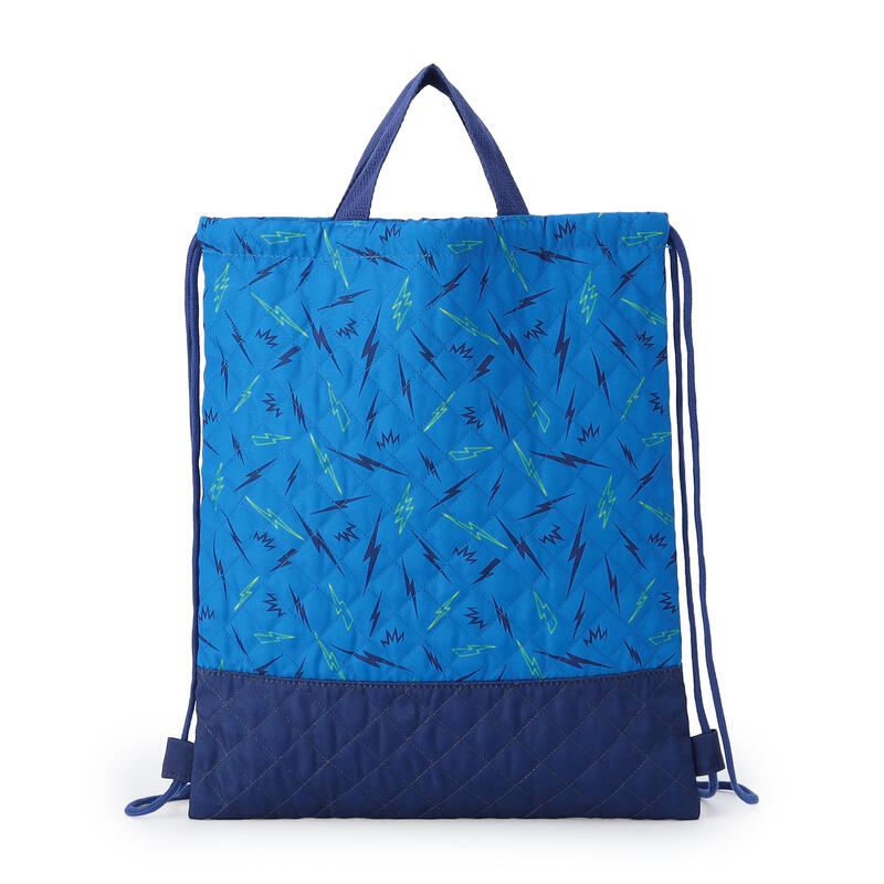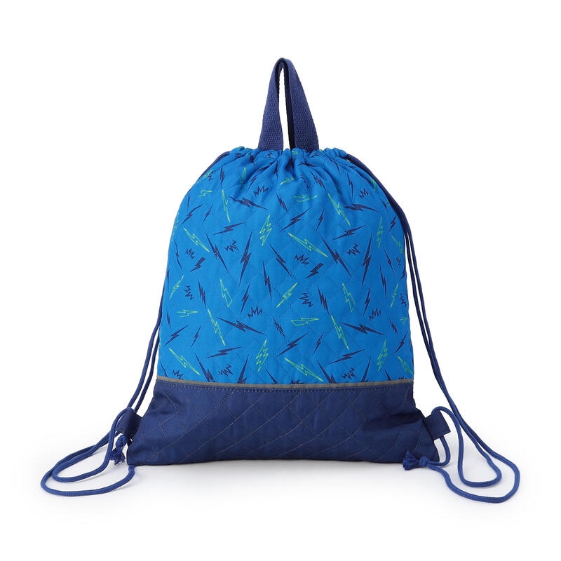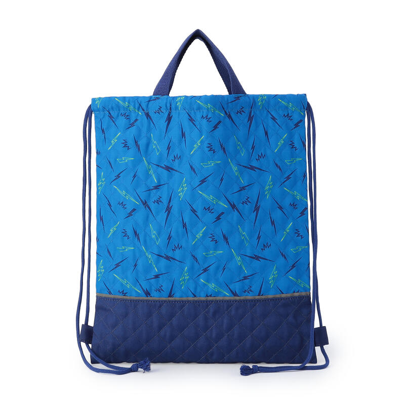 稲妻モチーフを散りばめた、キルティング素材のナップサック。