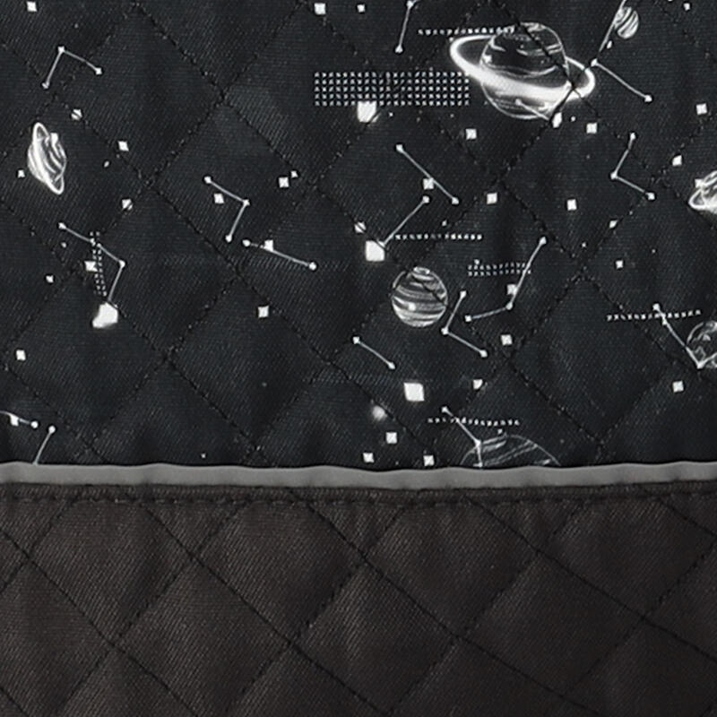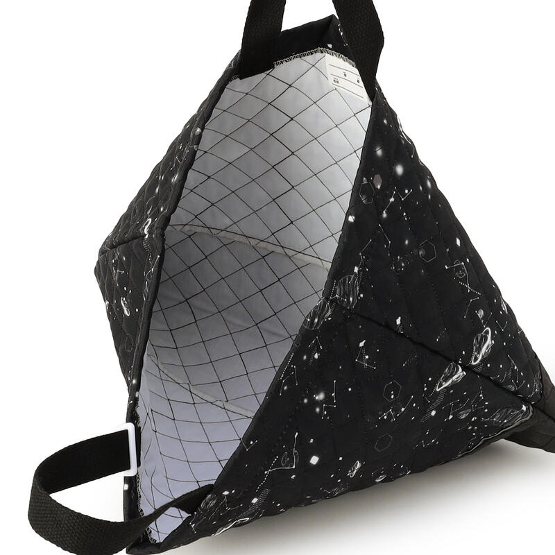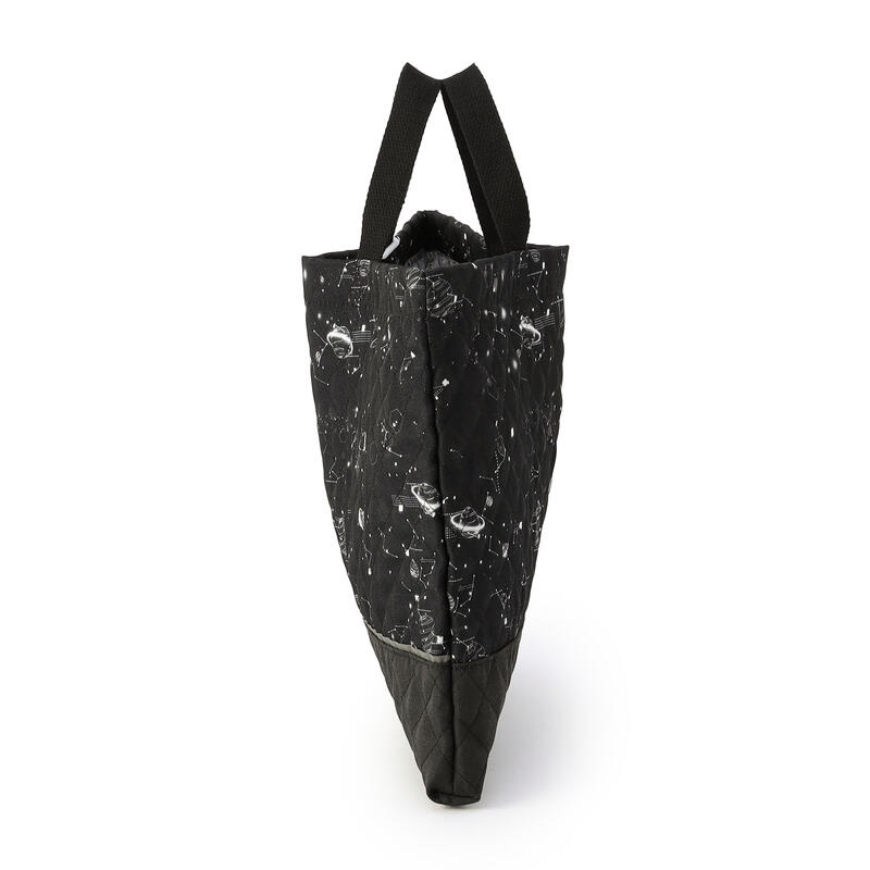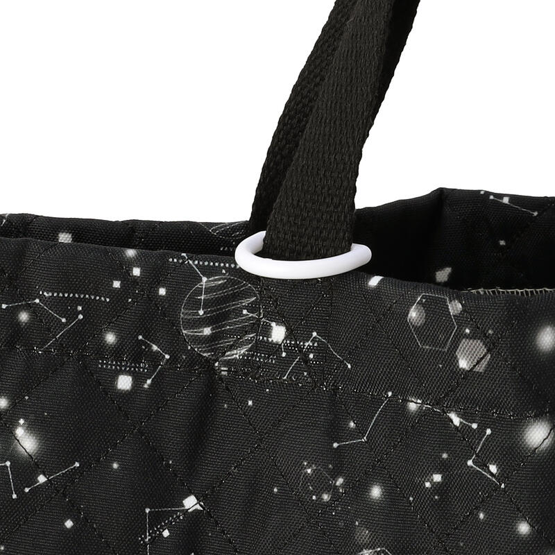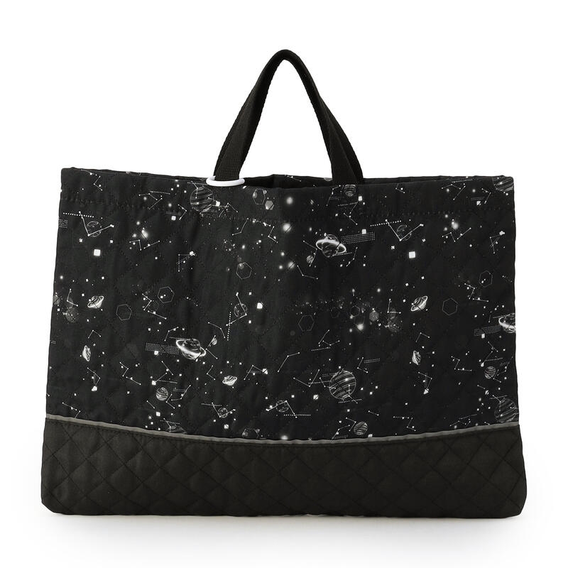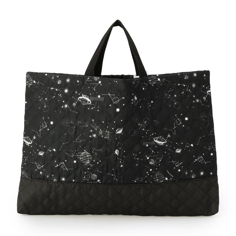 スペース柄に包まれたすっきりと収まるサイズのトートバッグ。