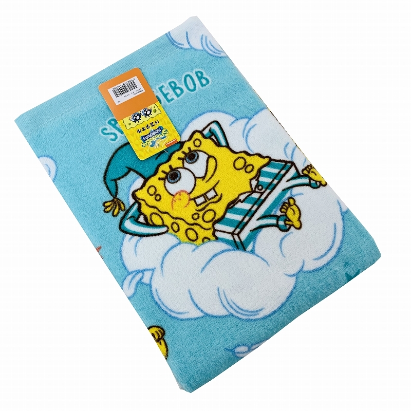 アメリカのキャラクター スポンジボブをデザインしたプリントタオル。