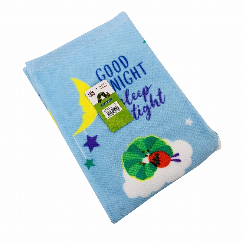世界中で読まれているエリック・カールの人気絵本 はらぺこあおむしをデザインしたプリントタオル。