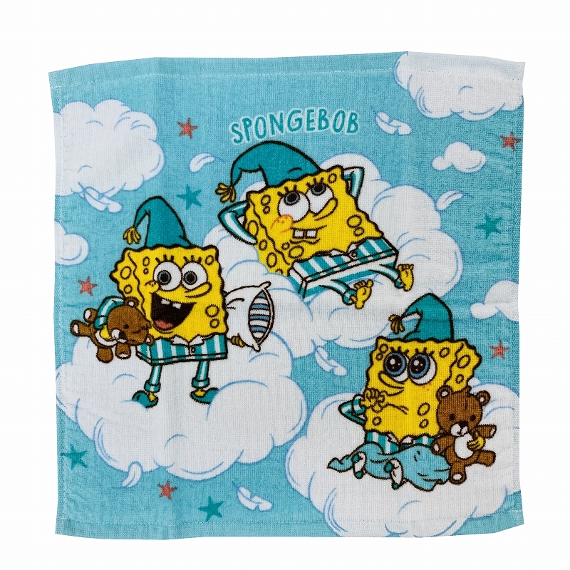 アメリカのキャラクター スポンジボブをデザインしたプリントタオル。
