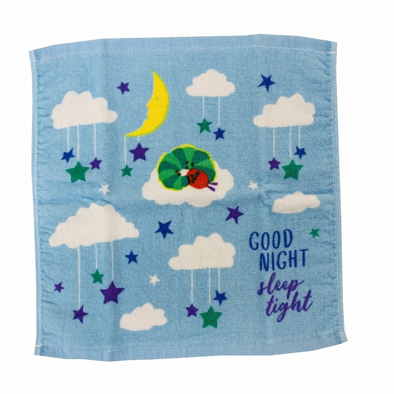 世界中で読まれているエリック・カールの人気絵本 はらぺこあおむしをデザインしたプリントタオル。
