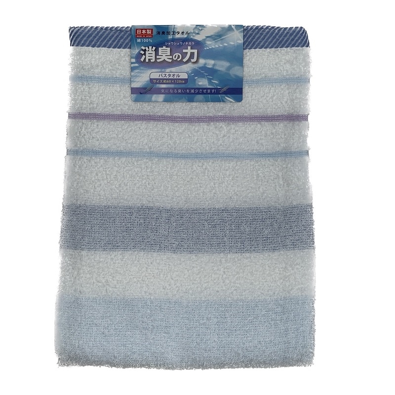 シキボウのスーパーアニエール(消臭)加工を施したタオル。繊維に付着した汗臭や生乾き等の臭いを減少させます。