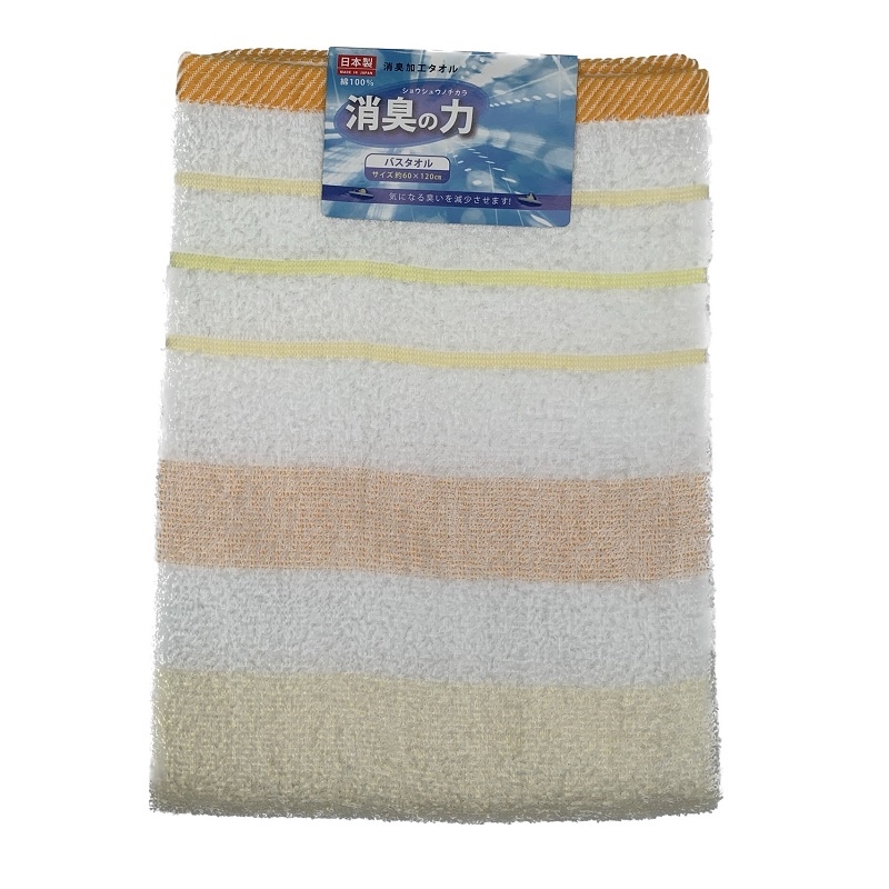 シキボウのスーパーアニエール(消臭)加工を施したタオル。繊維に付着した汗臭や生乾き等の臭いを減少させます。