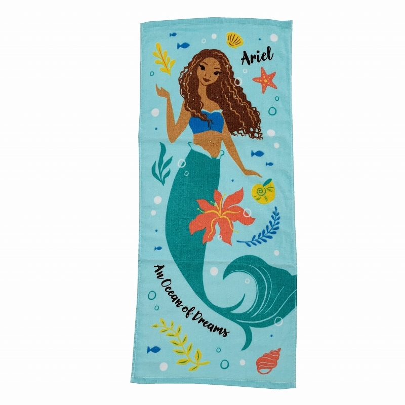 実写映画のリトルマーメイドのアリエルをデザインしたプリントタオル。